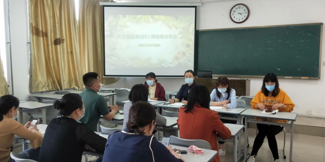 为促进教师间思政教学的有效交流,提升思政教学能力,2022年5月18日下午,《大学基础英语B2》课程组全体成员在知行楼203教室开展了课程思政教学分享会,会议由课程组负责人孟岩梅老师主持,孟岩梅、徐媛媛、王凤娇、魏芳芳四位老师先后做了经验分享。
