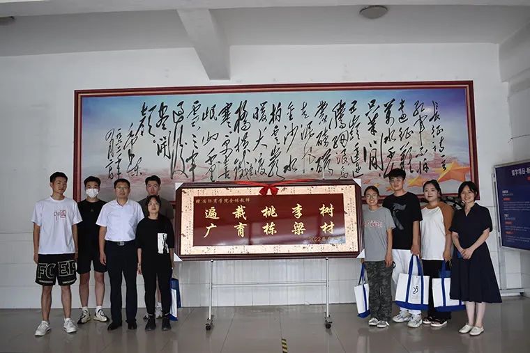 会后,留校毕业生向学院捐赠了“遍栽桃李树,广育栋梁才”牌匾,表达了他们对学院的一片真挚的祝福和深厚的感情。
