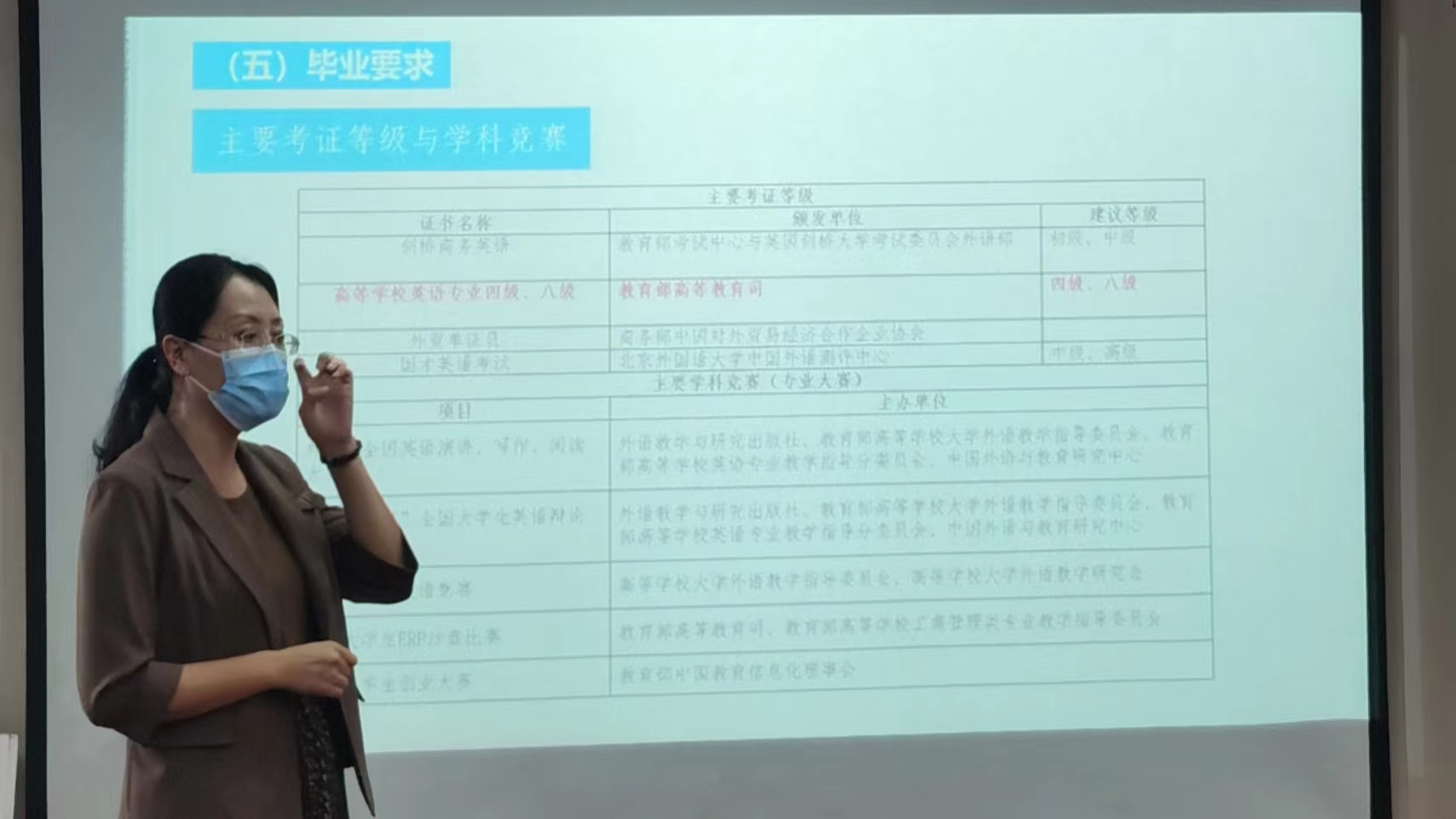 5.崔晓雷主任针对毕业要求进行了详细的描述,包括需要获得的专业证书和参加的专业知识竞赛;