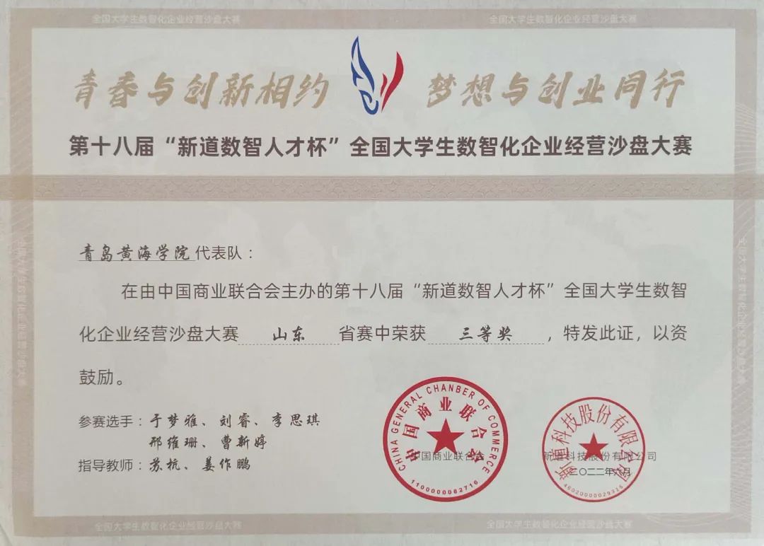 随着盛夏脚步的来临,第十七届全国大学生数智化企业经营沙盘大赛山东省总决赛落下帷幕。由我校ERP经营管理协会成员组成的参赛队伍在大赛中一路披荆斩棘,集思广益,团队成员相互协作,共同努力,分别荣获二等奖、三等奖的好成绩。这离不开同学们日复一日的努力和老师、学校的鼓励和支持,希望我们能够始终坚持自己的目标并砥砺自己,不断实现自我成长,再创佳绩,将大赛精神传承下去。
