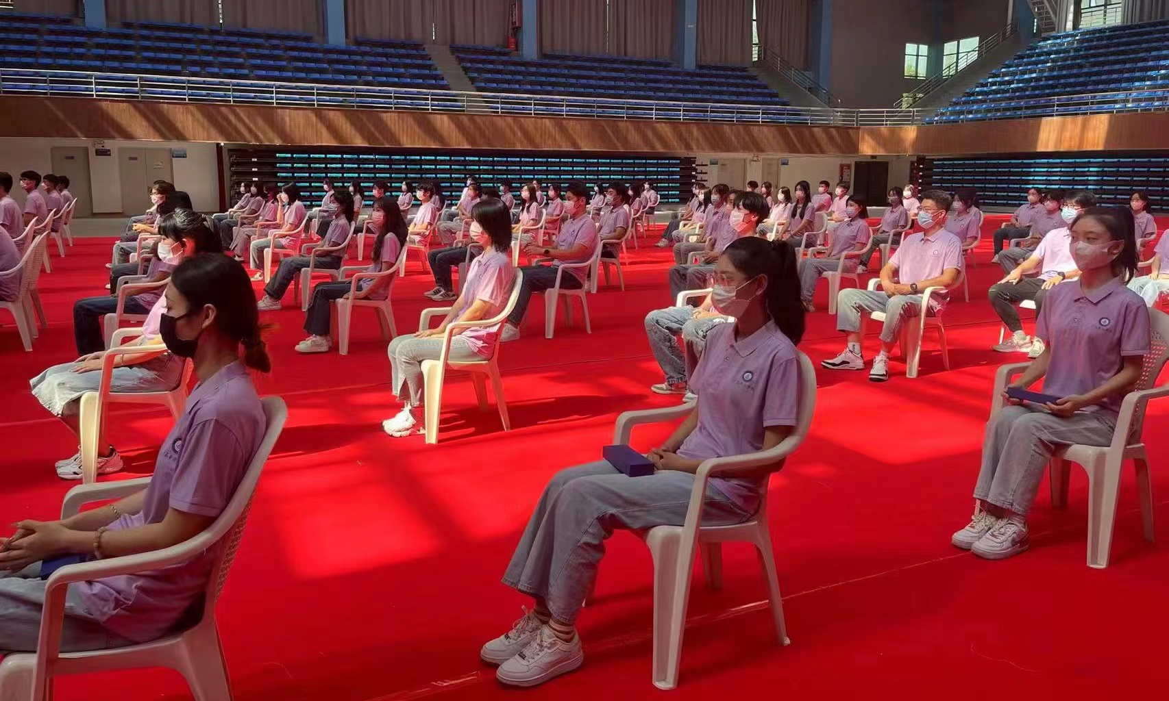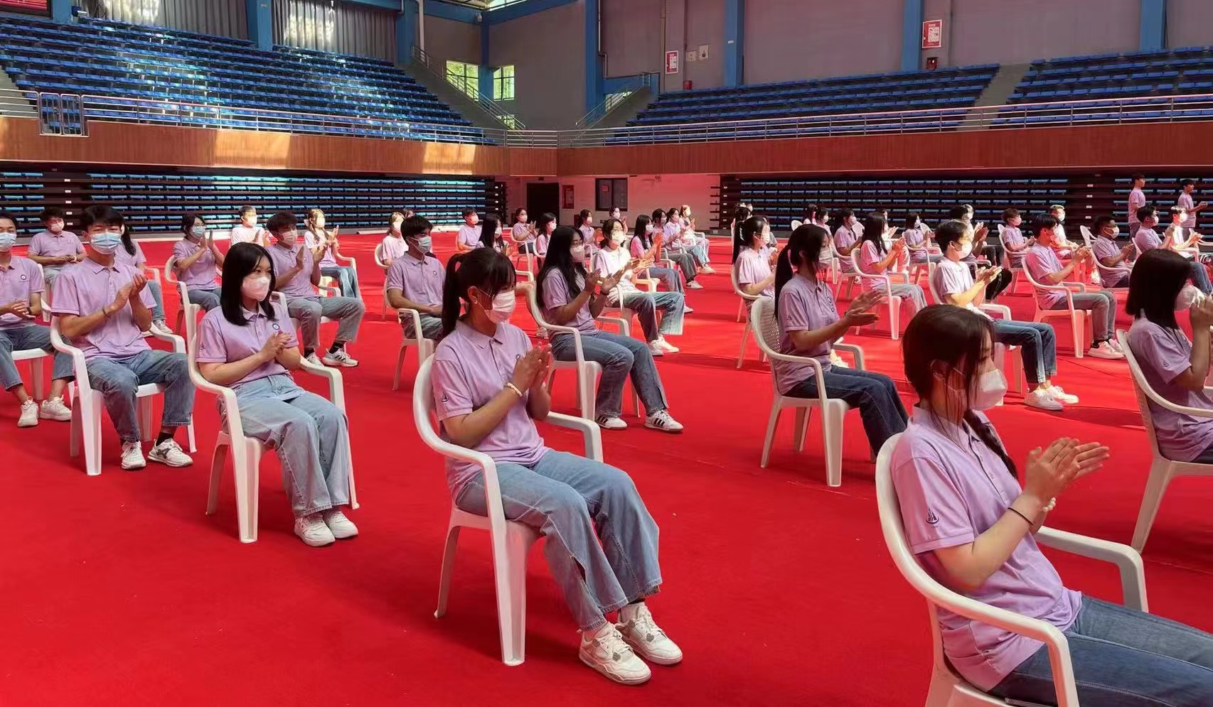 2022年9月23日,青岛黄海学院举行22级新生开学典礼。根据疫情防控要求,学校采取线上线下相结合的方式,除部分学生代表,国际商学院其余22级新生均在宿舍观看直播。
