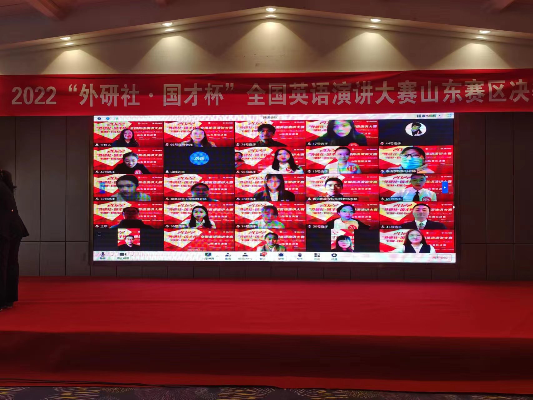 11月5日,2022“外研社·国才杯”山东省英语演讲比赛决赛拉开帷幕。本次山东省决赛演讲参赛选手154人,参赛院校78所,均为本科院校。通过校选赛选拔出的英语专业学生彭静雅和非英语专业学生潘子涵同学参加了本次比赛并荣获省赛二等奖,两位学子出色的发挥充分展现出我校学生优良的精神风貌和良好的语言素养。