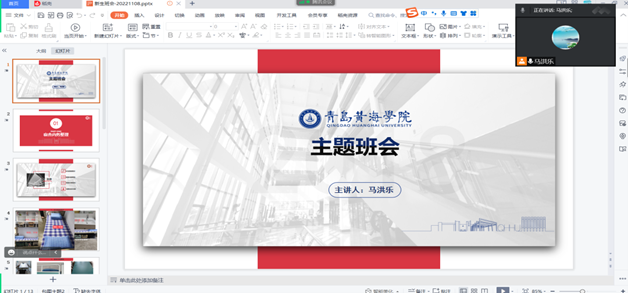 交流构筑师生友谊,沟通融化师生隔阂。生活中不能没有沟通,就像傲世苍穹的红杉不能没有坚固的根基,芳香四溢的鲜花不能没有给予它自信的阳光。2022年11月8号下午18点15分马洪乐老师针对宿舍、疫情、上课及自习情况通过线上会议开展了一堂班会观摩课,与同学们来了一场心与心的碰撞,鼓励同学们积极表达内心的声音,做好文明学生。