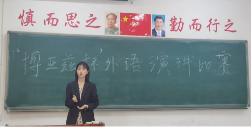 2022年10月13日下午2点,我校“‘博亚兹杯’外语演讲比赛决赛”在知新楼一楼东配报告厅成功举行。此次英语演讲比赛的决赛现场由外语系年轻优秀教师陈伟和张毅全程英文主持。