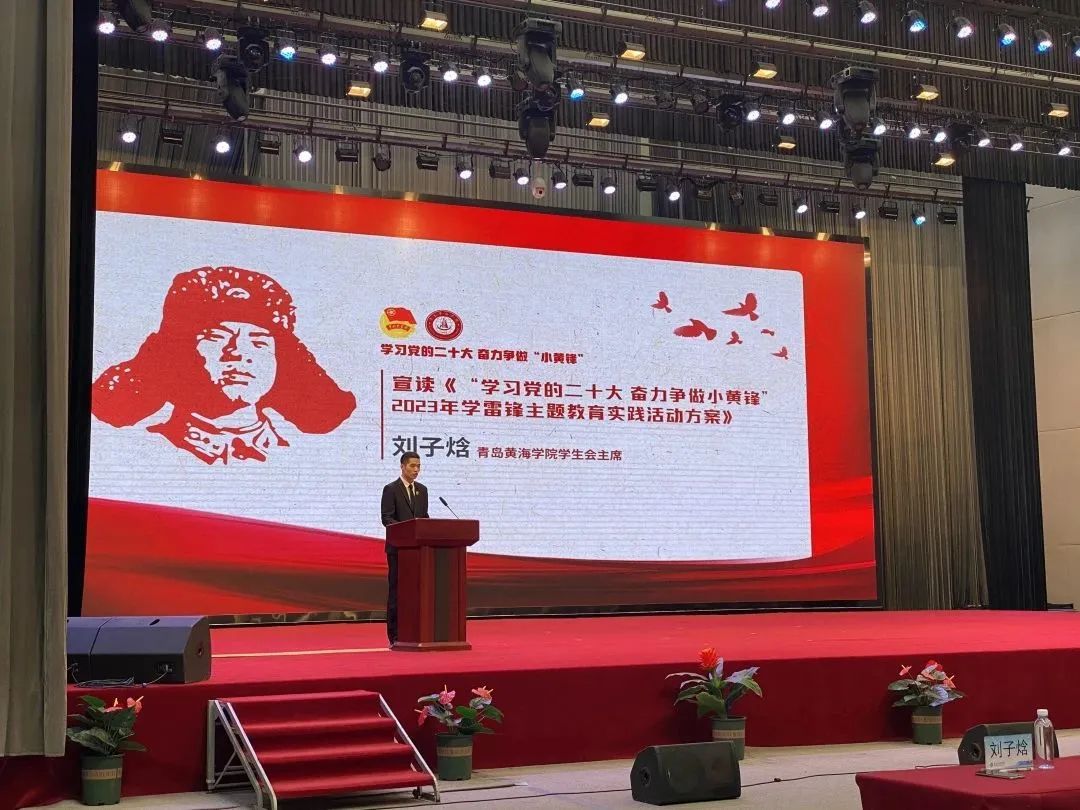 “向雷锋同志学习”,今年作为毛主席为雷锋题词的第六十周年,进行雷锋精神主题教育活动意义非凡。活动中,志愿者协会的学生代表李鑫带领全场学生发出振聋发聩的践行雷锋精神的铮铮誓言。在此之后,青岛黄海学院校长助理刘纪新发表演讲,号召广大青年学生,践行雷锋精神,积极参与“小黄蜂”志愿活动。