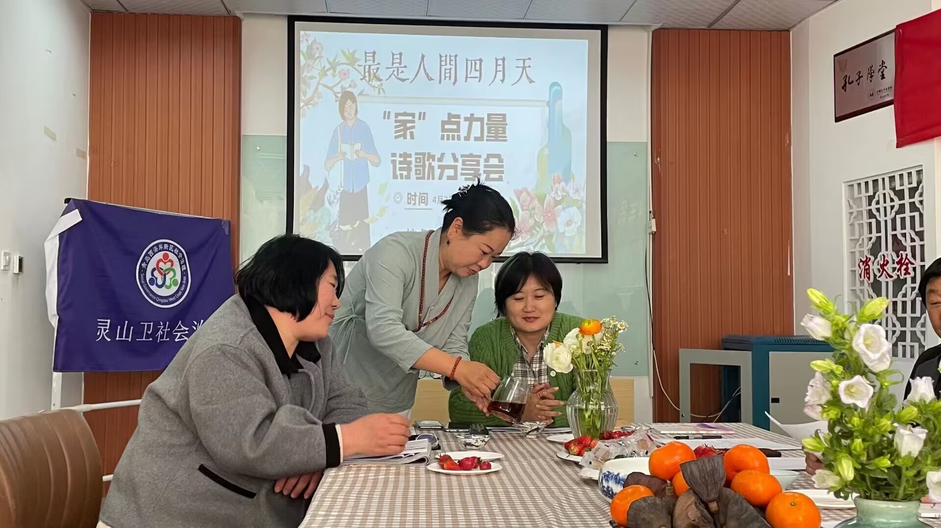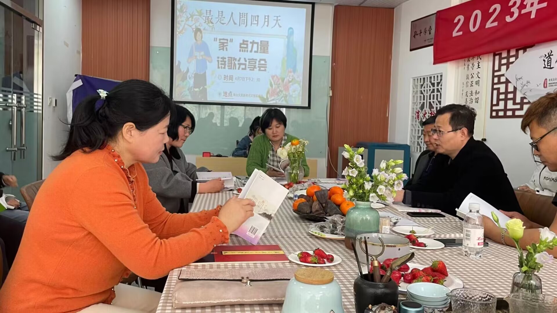 为了更好地传承和弘扬中华民族优秀传统文化,增强文化自信,国际商学院“赤雁”志愿服务团队15名志愿者于2023年4月7日下午两点半前去参加在珠山文苑新时代文明实践站举办主题为“‘家’点力量”的诗歌分享会,为保障活动顺利进行并促进传播优秀传统文化贡献一份力量。