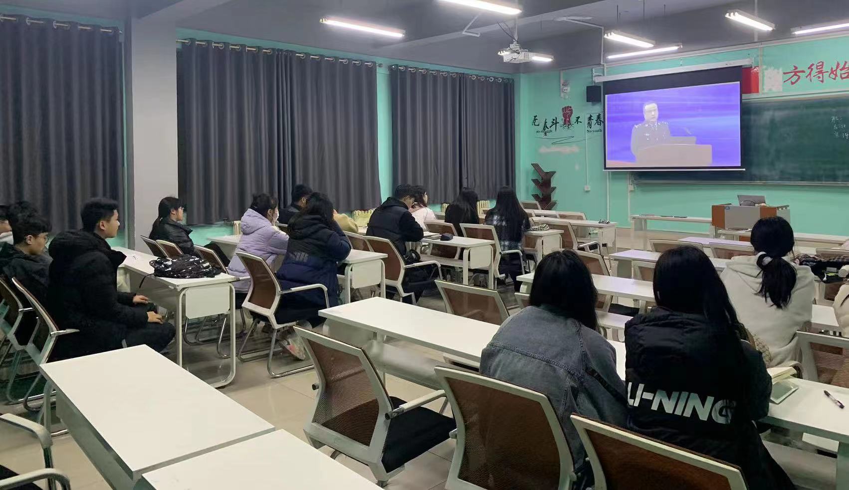 国际商学院的部分学生根据安排在体育馆内现场观看,其余同学在班级或宿舍内统一观看实时直播。同学们认真观看,积极学习法律知识,将法治精神牢记于心。