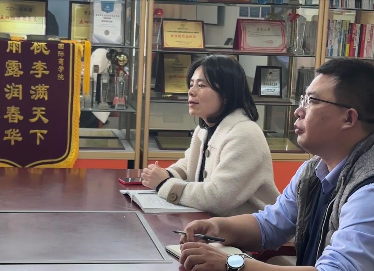 为解决班级最近出现的一系列问题,国际商学院于2023年4月12日在知诚楼214开展“院长面对面”座谈会,望以此解决同学们在学习生活中遇到的问题。参与本次会议的有国际商学院院长助理齐晓明、刘奕蔓以及21级各班班长。