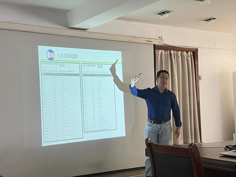 座谈会上,马来西亚跨境电商协会主席陈福义对马来西亚的人文特色、地理位置、经济发展等进行了详细介绍。他表示,学生选择出国在跨国企业进行实习,可以获得工作签证,公司可以为其提供较高的工资待遇,良好的工作环境和居住环境,并且在实习期间公司会开展各类培训活动,对学生的个人综合能力有一定的提升。他强调,由于工作和生活需要,实习学生需具备一定的外语基础,达到可以正常沟通的标准。另外,学生实习前,公司也会给学生进行相应的语言培训。