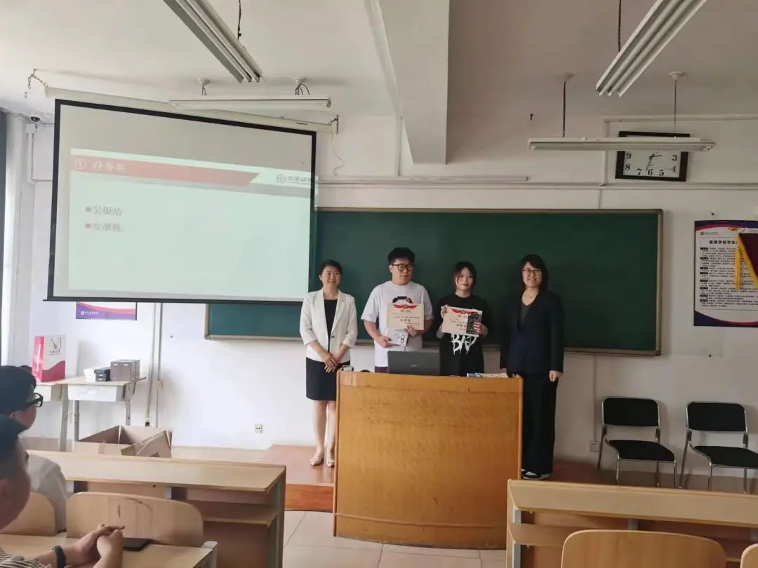 姜主任和蓝经理共同为此次比赛获得一等奖的张家萌、田孙文聪、朱芳慧、颜廷哲、路友恒、周铭雪同学颁奖。