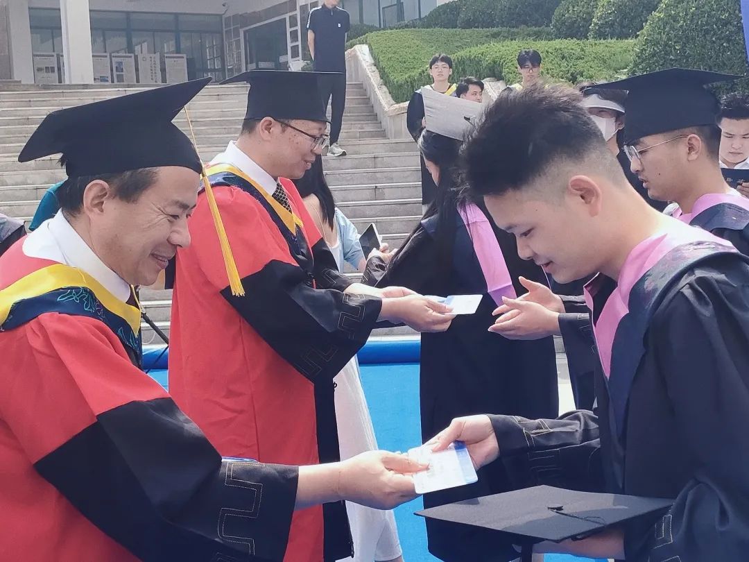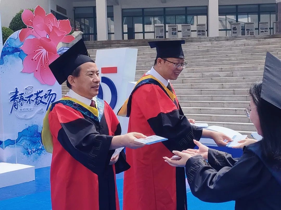 仲夏时节,万物并秀;拨穗正冠,整装待发。2023届青岛黄海学院大学子,今日扬帆起航,奔赴诗和远方。临近毕业之际,青岛黄海学院于2023年6月24日在体育馆举办本科生学位授予仪式。青岛黄海学院梁忠环副校长和国际商学院孙在福院长特代表国际商学院全体师生为毕业生发放毕业礼物,送上最温暖的毕业祝福。