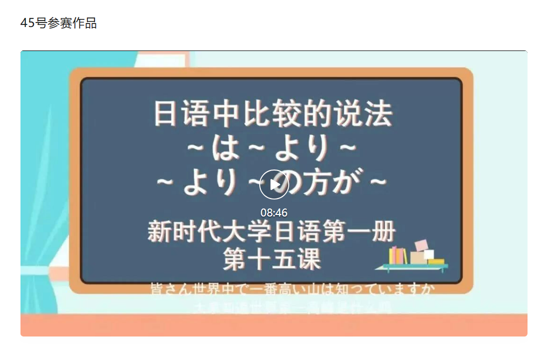 该团队以其精心设计和扎实的专业知识为基础,呈现了一堂生动、富有创意的微课。通过运用多媒体技术和互动式教学方法,成功地激发了学生对日语学习的兴趣。