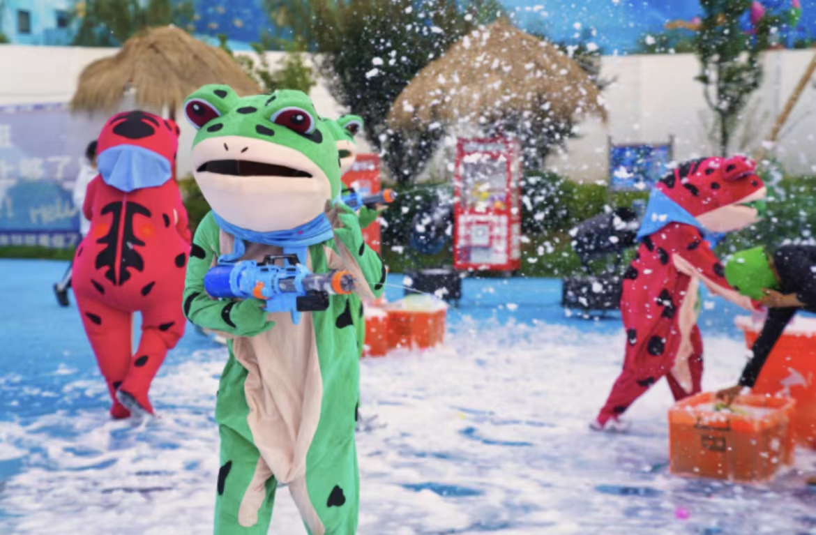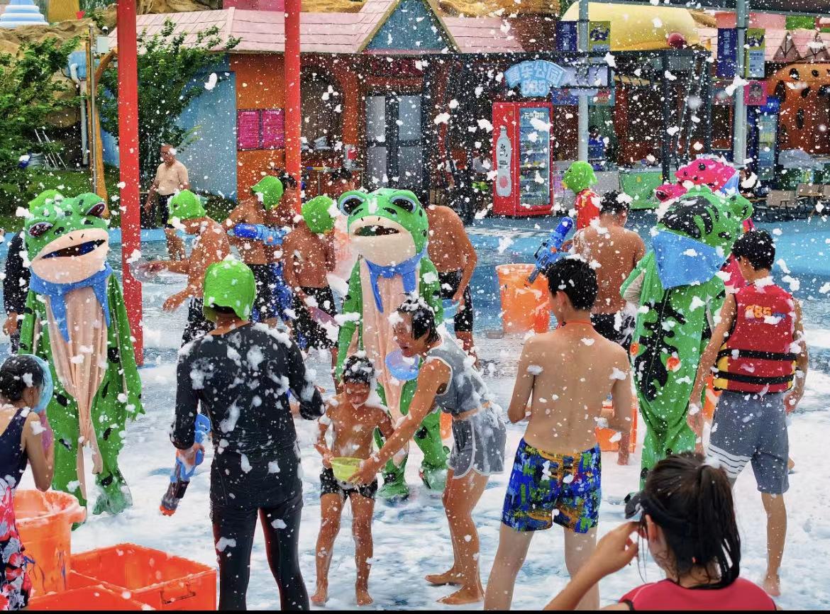 本次鱼人蛙蛙大作战活动正在进行时,激情音乐狂欢,梦幻水上泡泡,千人湿身派对,激情欢乐持续加码,本次活动老少皆宜,大人小孩都参与其中,活动现场激情澎湃,游客们都尽兴而归。
