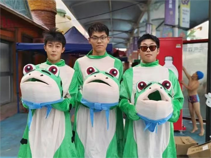 团队成员在此次活动当中参与了诸多岗位的工作。品宣部、运营部以及综合部都在自己的工作领域接触到许多在学校生活中所接触不到的层面。我们都同样接触到了活动的策划与执行,亲历亲为。885水世界景区的日常活动“鱼人蛙蛙大作战”则是由我们团队成员所策划并取得了一定的成效。其次我们也在一线工作岗位上奋斗,直接接触游客解答问题,负责景区直播、地推、接待、引导,销售等工作。最后,团队成员伙伴也负责一些对接领导,上传下达,做表格、写文案推文、负责新媒体的宣发工作,当然也负责做一些日常考勤统计,总结性的内容。大家都明确自己的工作任务,根据自己的任务规划自己的工作内容。贡献自己的一份力量。