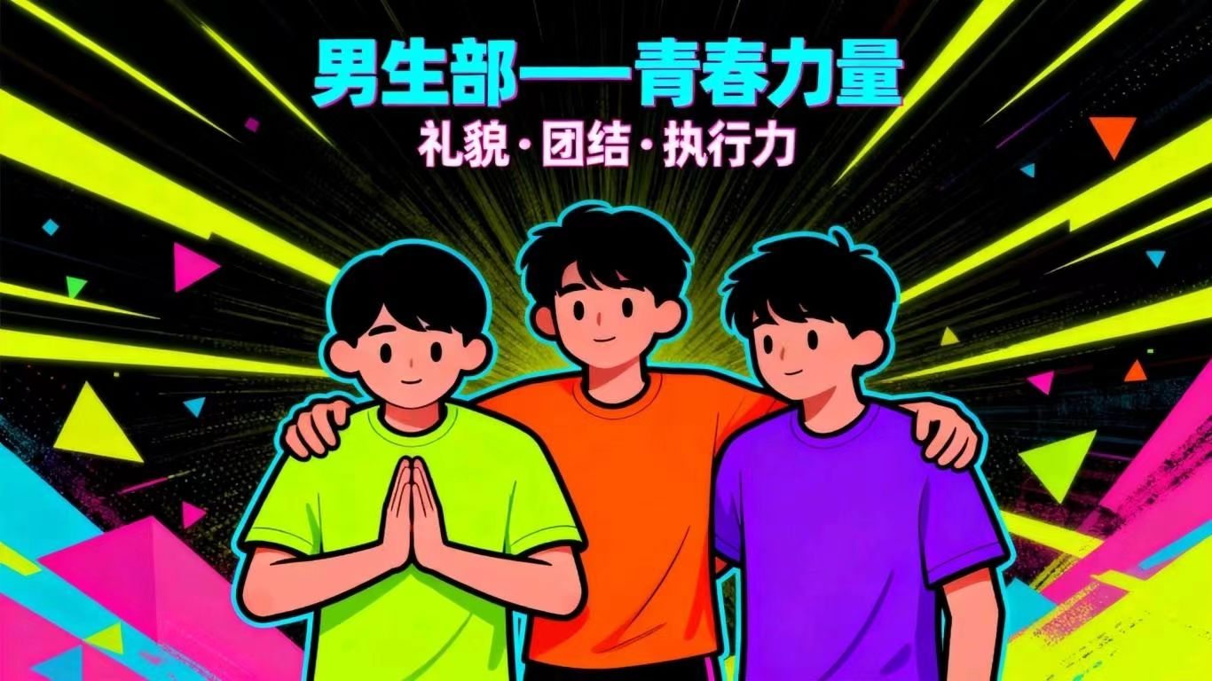 男生部始终秉持礼貌、团结、执行力三大核心品质。礼貌是我们待人接物的名片,尊重每一位同学,让沟通温暖而顺畅;团结是我们前行的强大引擎,成员们携手共进,凝聚一心;执行力是我们的行动标尺,对待工作不打折扣,高效落实。