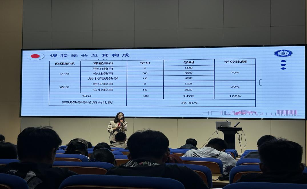 课程体系与大学规划部分,古老师解读了物流管理专升本专业的课程学分构成:总学分80分,其中专业教育必修30学分、选修16学分,集中实践教学18 学分,实践教学学分占比达38.61%,凸显了专业“重实践、强应用”的培养理念。在大学规划指导中,古老师分享了往届学生的升学与就业数据,2020届、2022届本科毕业生考研录取率分别达8.5%、10.13%,2023级专升本也有1人成功升学;就业去向涵盖生产物流如华为、海尔、中车四方,第三方物流如顺丰、京东物流、航运物流(如中国海运、中国外运)、港口物流等多个领域,薪资水平与职业发展空间良好。同时,古老师建议新生明确大学目标,掌握科学学习方法,多参与社团活动与师生交流,兼顾学习与生活,在大学期间实现全面成长。