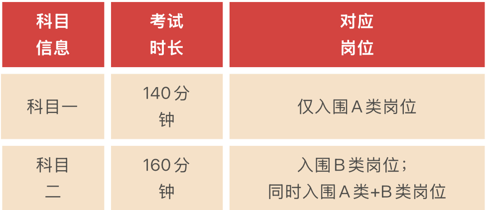 1. 笔试科目依据考生入围岗位进行区分: