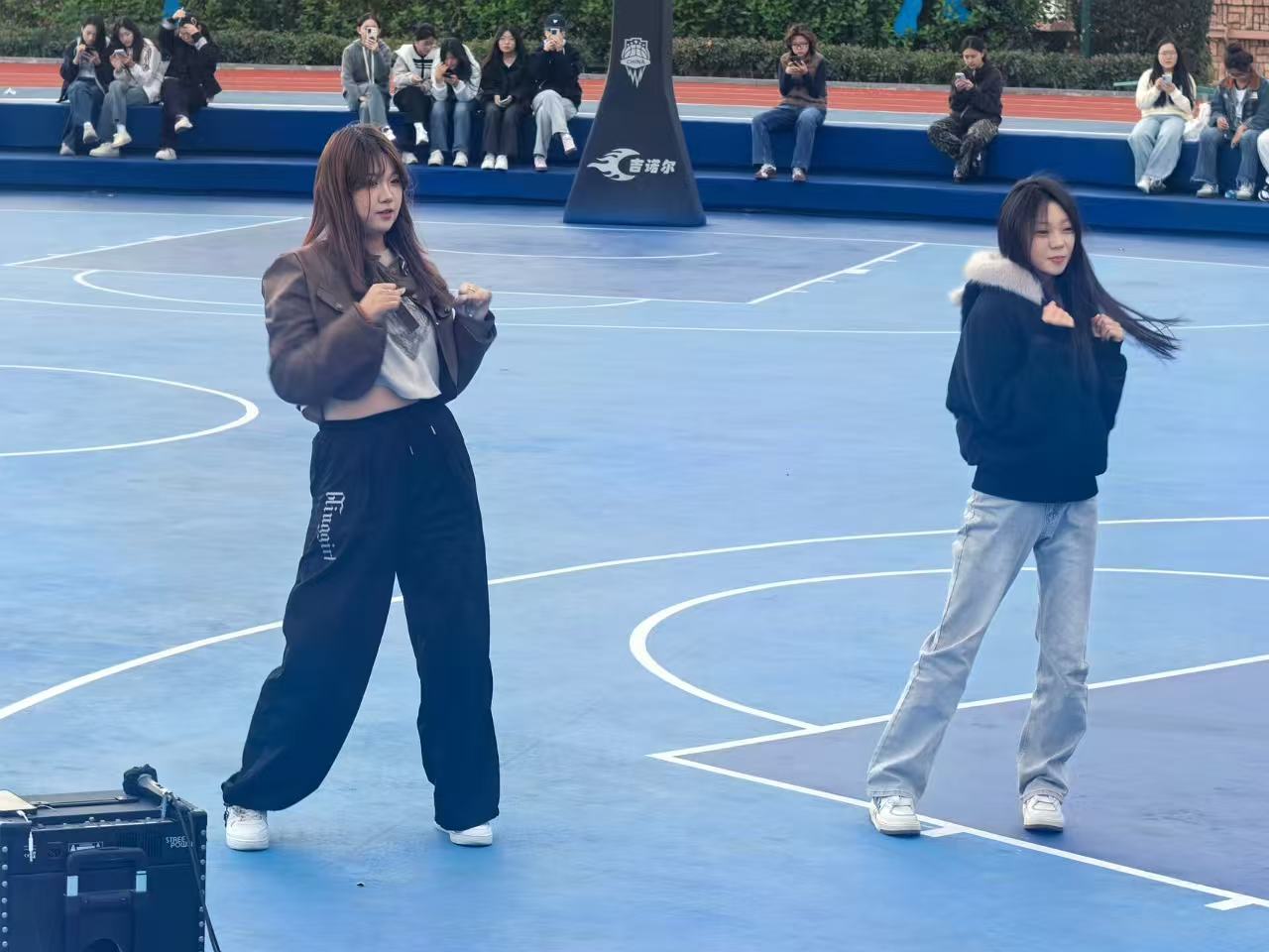 活动伊始,袁辉成同学以一首深情而富有感染力的Always Online开场,悠扬的歌声瞬间抓住了所有观众的耳朵,为活动注入了第一份活力。随后,由马靖童、何欣冉、黄楠欣彤、李思琦、于梓涵五位同学带来的开场舞瞬间点燃全场,她们动作整齐划一,力量与美感并存,引来现场阵阵尖叫,正式拉开了随机舞蹈的奇幻序幕。