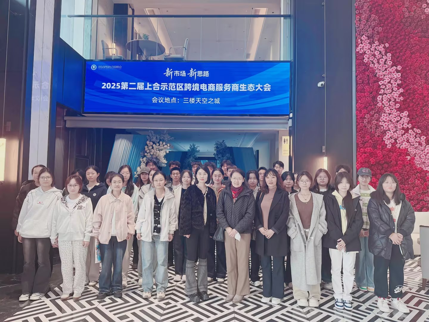 新市场风起云涌,新思路引领征途。10月31日下午,国际商学院跨境电商专业教师肖玲诺、曾海容、周津阅带领40名2025级该专业学生,前往胶州摩卡宴会中心,参加了以“新市场,新思路”为主题的第二届上合示范区跨境电商服务商生态大会。本次大会汇聚了400余位跨境电商企业代表、政府部门负责人、行业专家与学者,共商贸易变局下的出海新机遇,标志着上合示范区跨境电商生态建设迈向深化协同与高质量发展的新阶段。