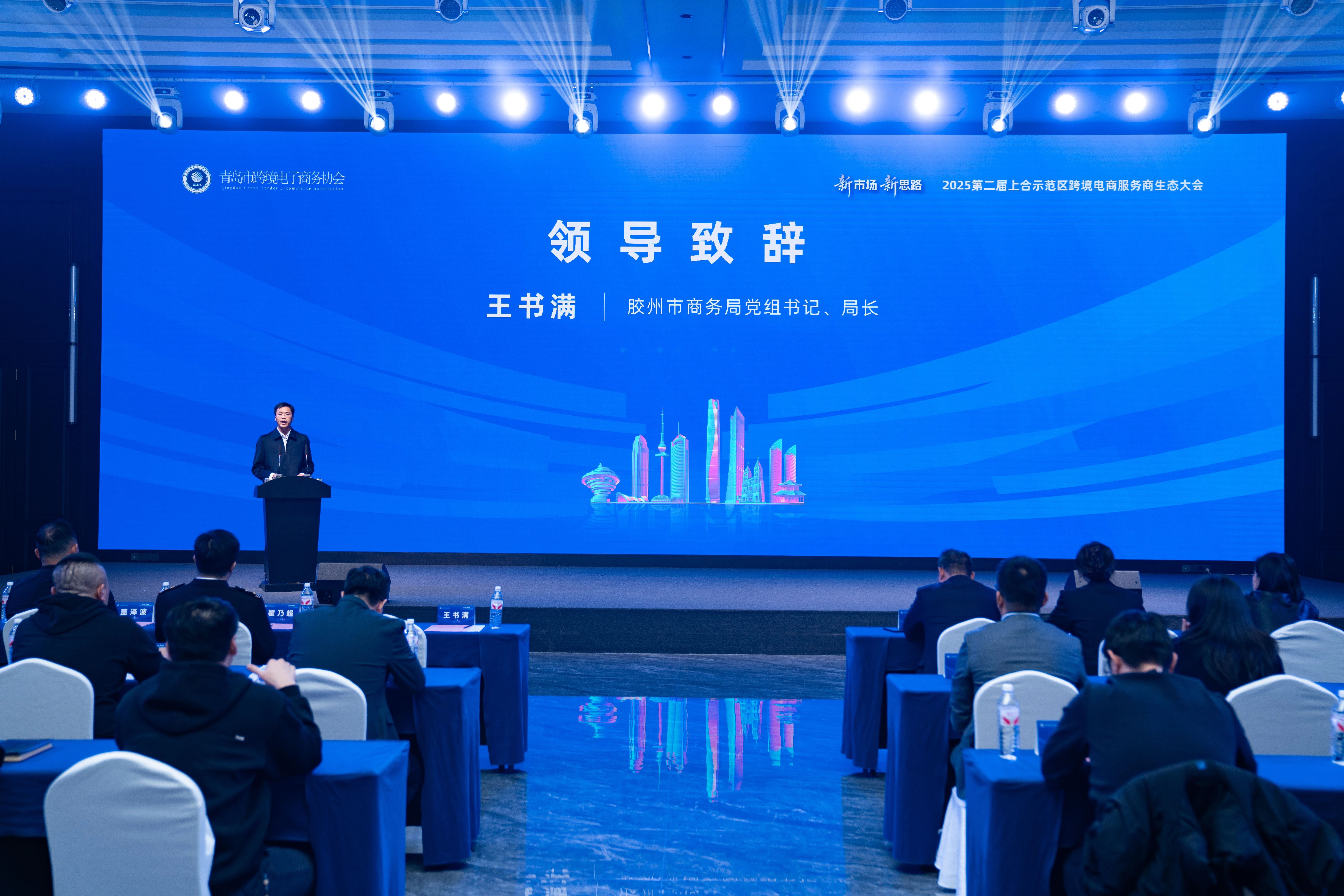 大会在胶州市商务局党组书记、局长王书满的致辞中拉开帷幕。他深刻分析了全球贸易格局的深刻调整,指出跨境电商正面临“新市场开拓”与“新思路创新”的双重机遇,并强调胶州将持续优化政策与服务,推动跨境电商与本土产业深度融合,助力“山东制造”借力上合通道走向世界。青岛市跨境电子商务协会常务副会长盖泽波回顾了生态建设的初步成果,承诺协会将继续发挥桥梁作用,串联政、企、服务商资源,以创新思路推动生态向“深度协同”升级。