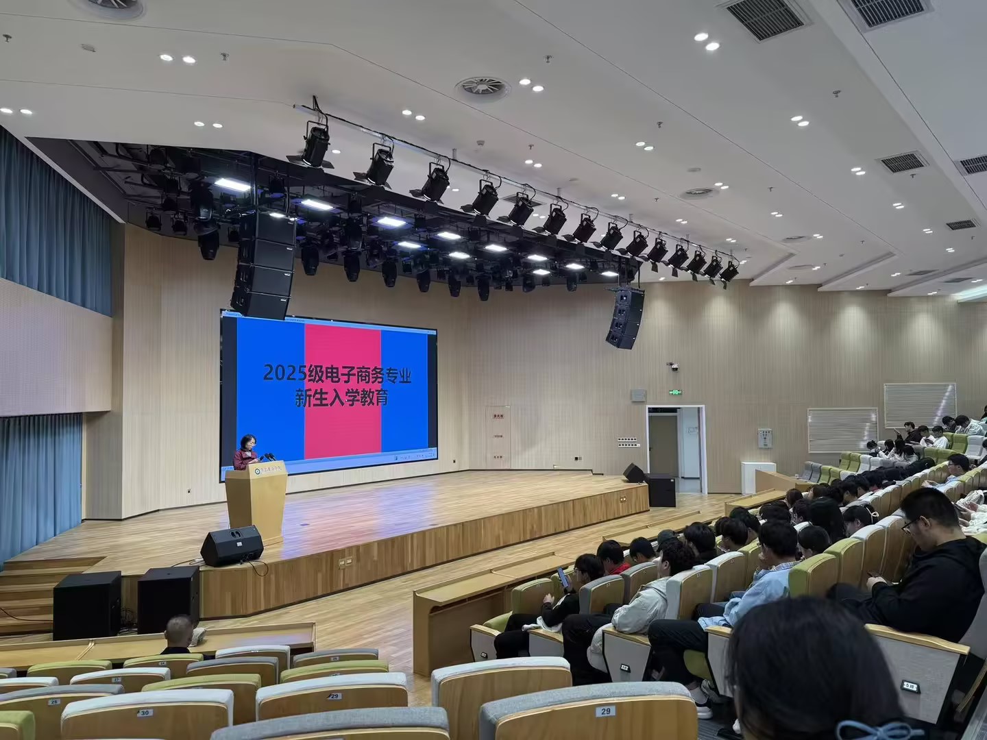 10月31日,数字商务系在知信楼306报告厅开展电子商务专业新生入学教育。2025级电子商务本科、专升本班级的学生参加本次入学教育。数字商务系主任石淑翠为新生系统介绍了电子商务专业的发展历程与专业发展方向。在专业发展概况环节,石主任结合当前数字经济浪潮,梳理了电商行业从传统模式到直播电商、跨境电商等新业态的演进历程,让新生直观感受专业的时代价值。随后,石主任详细解读了人才培养方案,从课程体系设置角度明确了专业的培养路径,并介绍了学业导师制度,强调导师将在学业规划、职业发展等方面为新生提供“一对一”指导,帮助大家更快适应大学学习生活,为后续专业学习筑牢认知根基。
