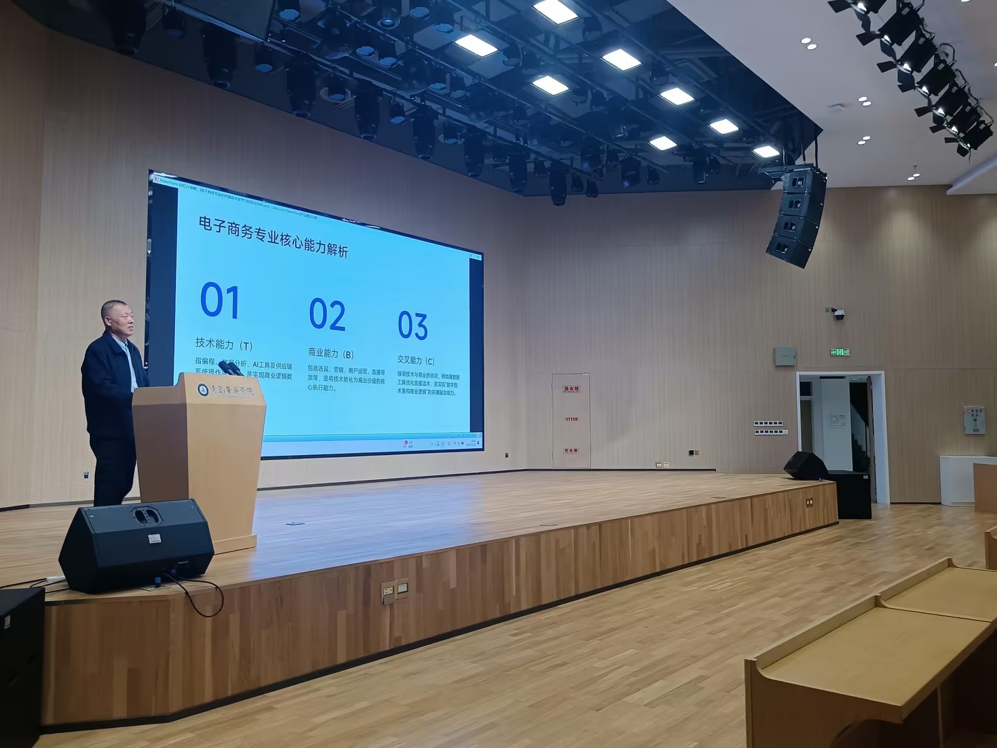 陈忠全教授以“电商专业前景与专业学习的努力方向”为主题,为新生们带来了一场富有启发的报告。陈教授结合行业数据与典型案例,深入剖析了电子商务专业的广阔前景,指出随着数字技术与实体经济的深度融合,电商领域对复合型人才的需求持续攀升,毕业生在跨境电商、电商平台运营、数字营销等方向均有丰富的就业选择。同时,陈教授也为新生指明了专业学习的努力方向,强调要扎实掌握新技术、新工具,提升数据分析、新媒体运营等实践技能,还要保持对行业趋势的敏感度,主动学习新技术、新玩法,鼓励大家以积极的态度迎接专业学习中的挑战,为未来职业发展积蓄力量。