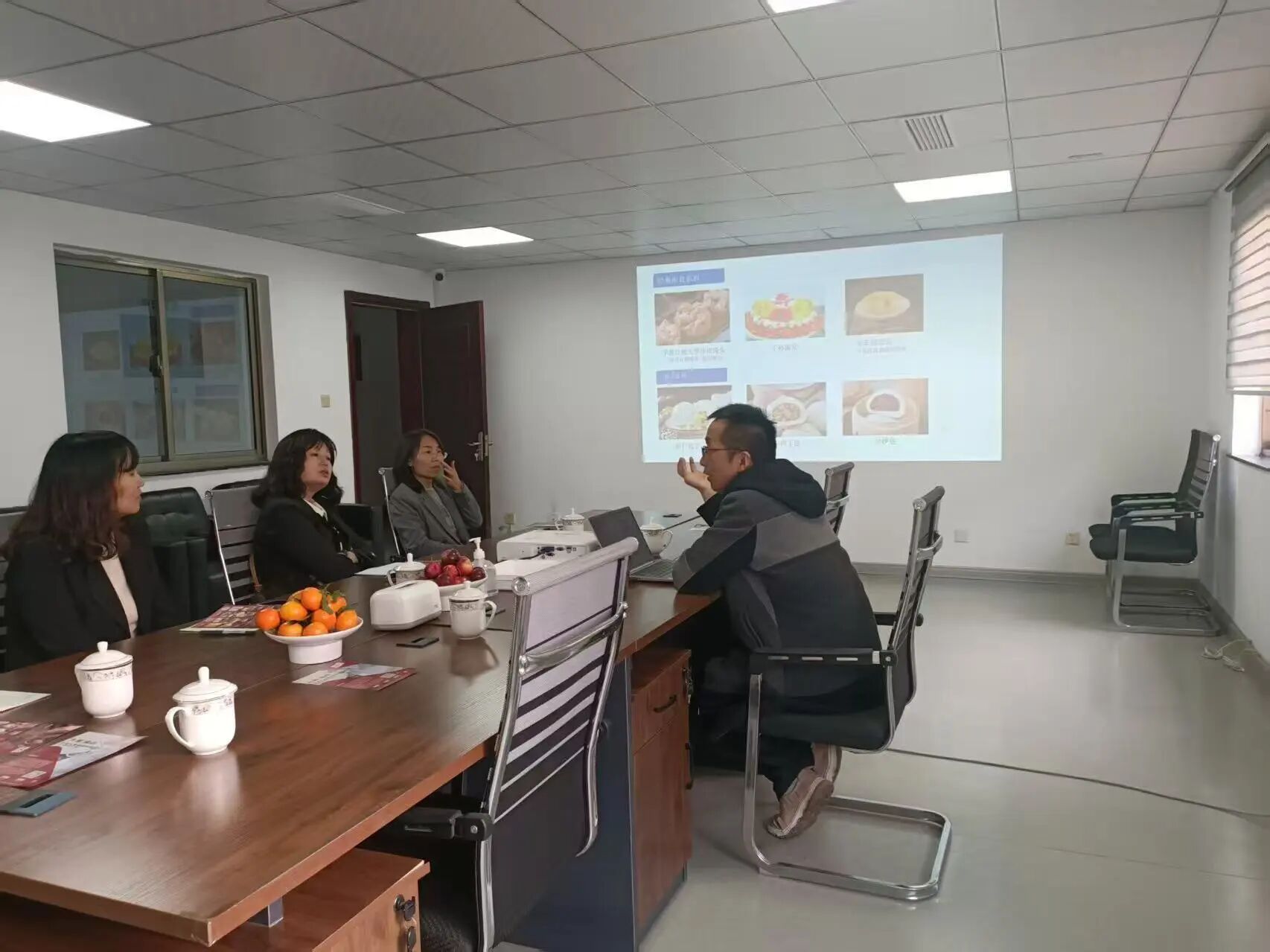 洽谈伊始,校企双方分别介绍了各自的发展概况与核心优势。国际商学院方面重点阐述了学院在数字商务领域的学科特色、人才培养模式及学生的创新实践能力。青岛九紫食品有限公司总经理周朋杨则结合企业宣传资料,详细介绍了公司以“感恩、责任、利他、共赢”为核心理念,致力于将优质胶东面食推向全国的企业愿景。他特别强调了九紫食品依托全产业链布局,从河套面粉优质原产地取材,到30万级净化车间标准化生产,再到覆盖多省的冷链配送网络,展现了企业扎实的产业基础和卓越的产品品质。目前公司旗下拥有经典面食、馅饼、包子、粗粮等四大系列百余款产品,其中非遗海虾大包、开花馒头等明星产品更是以其独特的工艺和鲜美的口感赢得了市场认可。
