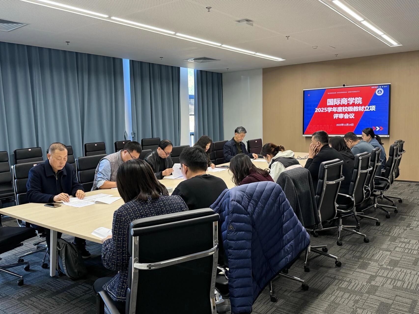 为落实学校教材建设规划要求,强化教材编写质量与申报规范管理,11月13日下午,国际商学院召开教材编写与申报专项工作会议。国际商学院教材委员会主任王志宪、副主任及各委员参会,重点部署教材编写方向梳理、申报材料审核及政治审查等专项工作。