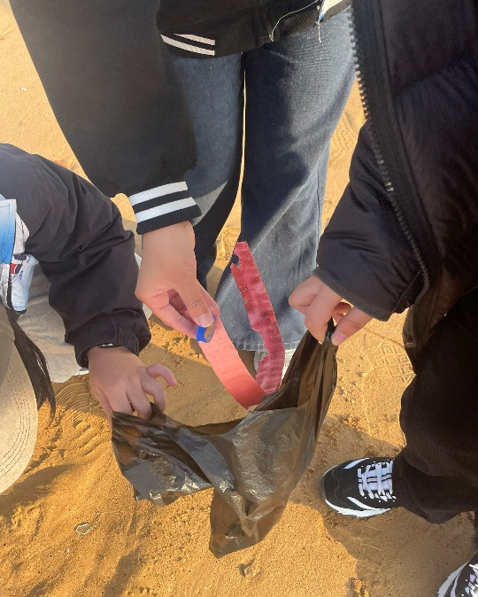 经过近两小时的持续努力,岸线重现洁净风貌:银沙与蓝海相映,微风里再无垃圾碎屑的杂乱。此次行动不仅有效改善了海滩环境,更让志愿者们深刻体会到“生态保护始于微末”——参与活动的同学表示,亲手清理垃圾的过程,让“海洋保护”从口号变成了具象的责任,愿以自身行动带动更多人关注海岸生态。