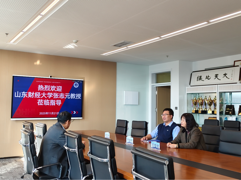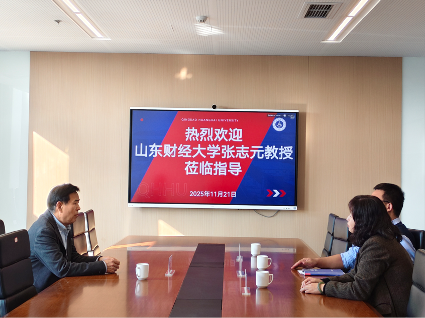 11月21日下午,山东财经大学资深教授、博士生导师张志元教授受邀莅临国际商学院,先后在406会议室、412教室开展专题指导会议与主题讲座。本次活动以“破界求存——当代大学生必修的财商美商课”为核心主题,国际商学院副院长齐晓明、院长助理王佳璇及财会金融系主任姜作鹏出席活动并对张志元教授的到来表示热烈欢迎与衷心感谢,学院相关系部负责人及金融科技专业学生代表参会,围绕学术前沿动态、学院发展规划及人才培养路径展开深入交流。