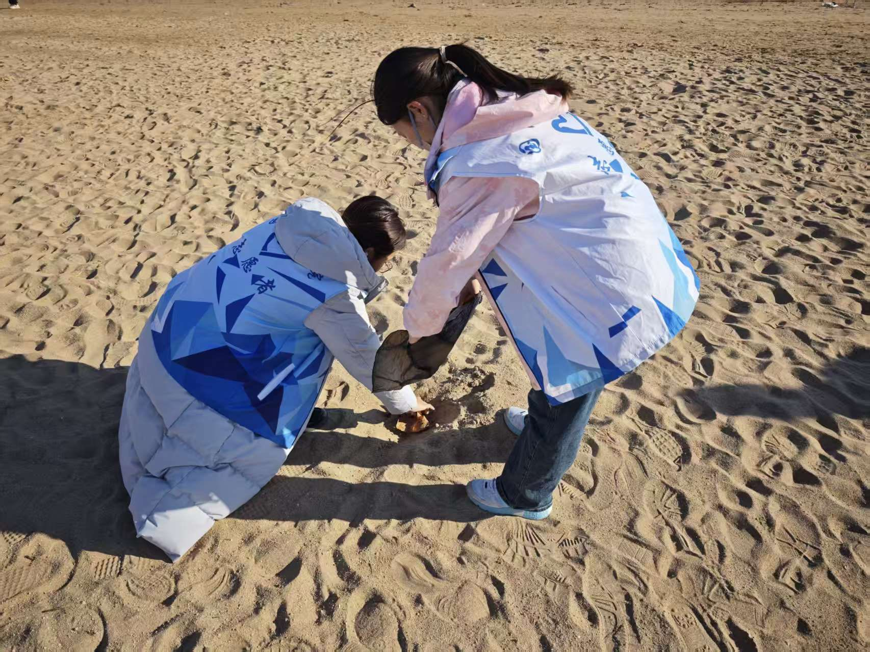 志愿者们刚抵达便迅速“入局”:有人蹲身细扒沙缝,把藏在深处的碎屑一一拈出;有人攀走礁石区,用夹子抠出嵌在石隙的顽固垃圾;还有小组守在垃圾袋旁,将分拣好的可回收物、有害垃圾分类归置。午后阳光漫过肩头,汗水沾湿了袖角,却没让任何一双清理垃圾的手放慢节奏。