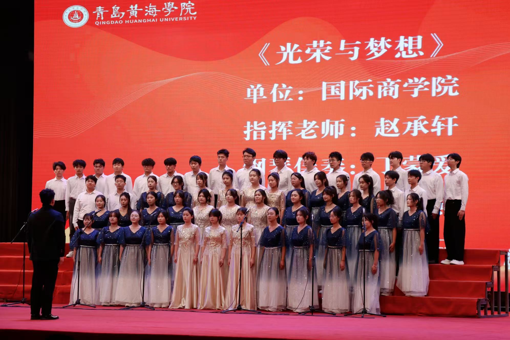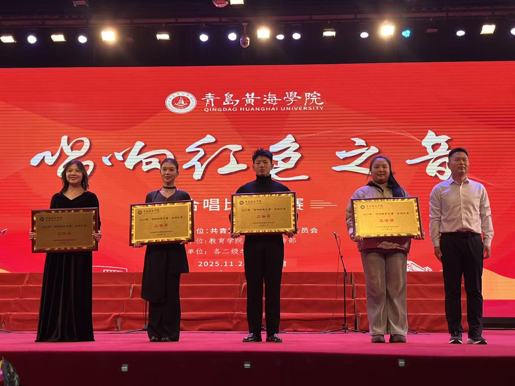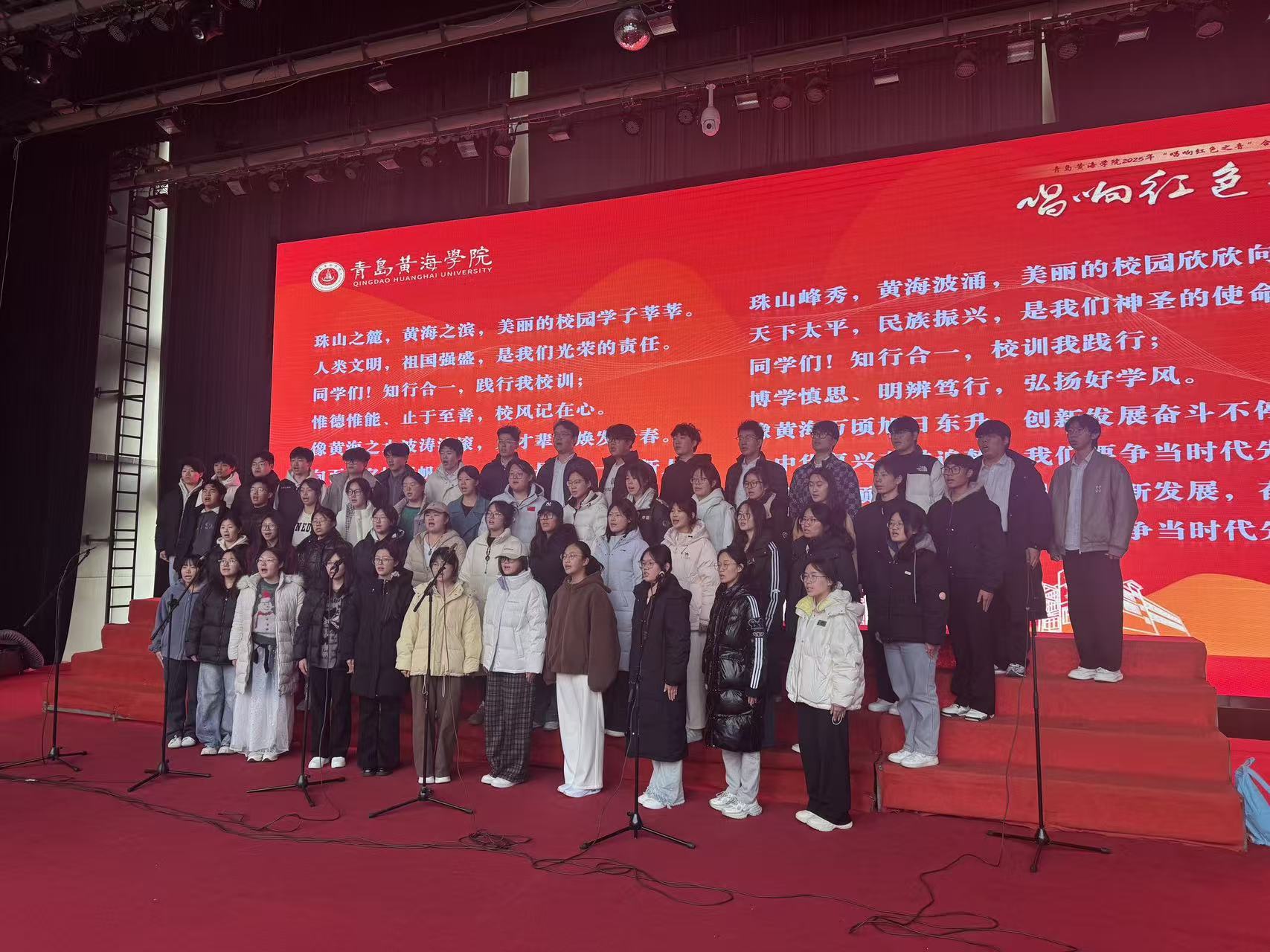 比赛现场,气氛热烈而振奋,各学院演唱的红色经典歌曲,作为红色记忆与时代精神的生动载体,以其激昂的旋律、真挚的情感和深刻的内涵,牢牢吸引着在场师生的目光。国际商学院带来的《光荣与梦想》,数字商务学院带来的《长城谣》,智能制造学院带来的《追寻》,信息科学与工程学院带来的《我爱你中国》,影视学院带来的《孤勇者》,惠灵顿学院带来的《保卫黄河》,医学院带来的《东北民谣》,钱学森学院带来的《飞翔的路》,智慧城市工程学院带来的《歌唱祖国》,设计与美术学院带来的《不要慌太阳下山有月光》,工程技术学院带来的《众人划桨开大船》,语言文化学院带来的《不忘初心》,教育学院带来的《青岛黄海学院之歌》《落叶归根》《学习历雷锋好榜样》。