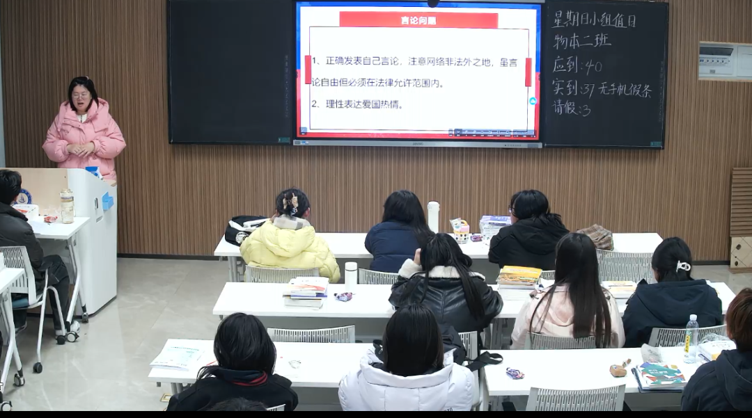 班会期间,老师们紧扣校园安全、消防安全、网络反诈、交通安全、心理健康五大核心板块,结合真实案例与校园日常场景,以通俗生动的方式拆解安全知识,反复叮嘱同学们绷紧安全之弦,筑牢校园安全防护网。课堂上师生互动热烈,同学们认真聆听、积极交流,不仅熟练掌握了电信诈骗防范、宿舍规范用电、应急避险等实用技能,更深刻认识到安全是校园学习生活的前提与基础。针对同学们的疑问,老师们逐一耐心解答,将安全意识融入细节指引,引导大家做到知安全、懂安全、守安全,切实提升自我保护能力。