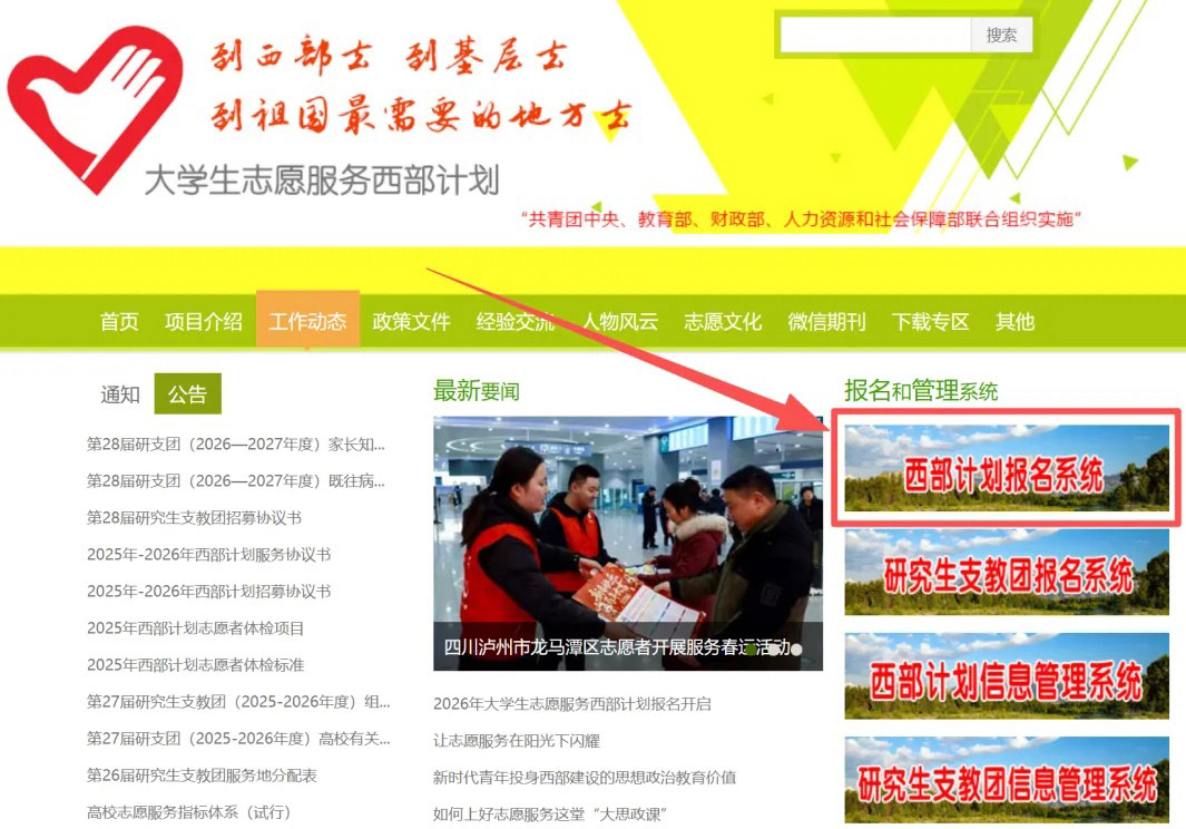 2026年大学生志愿服务西部计划报名通道已开启,想要到西部去的小伙伴们速速报名,一起报效祖国,建功西部。3月1日至5月10日,2026年普通高等学校应届毕业生或在读研究生, 可登录西部计划官方网站(https://xibu.youth.cn)或通过“西部志愿汇”微信公众号 (菜单栏中的“我要报名”),在西部计划信息系统(https://west.youth.cn/login)中完成注册报名。“报名入口怎么找”“报名需要什么步骤”“需要填写什么信息”......别急这份超详细报名流程快收好!仔细阅读要求认真填写信息顺利完成报名。