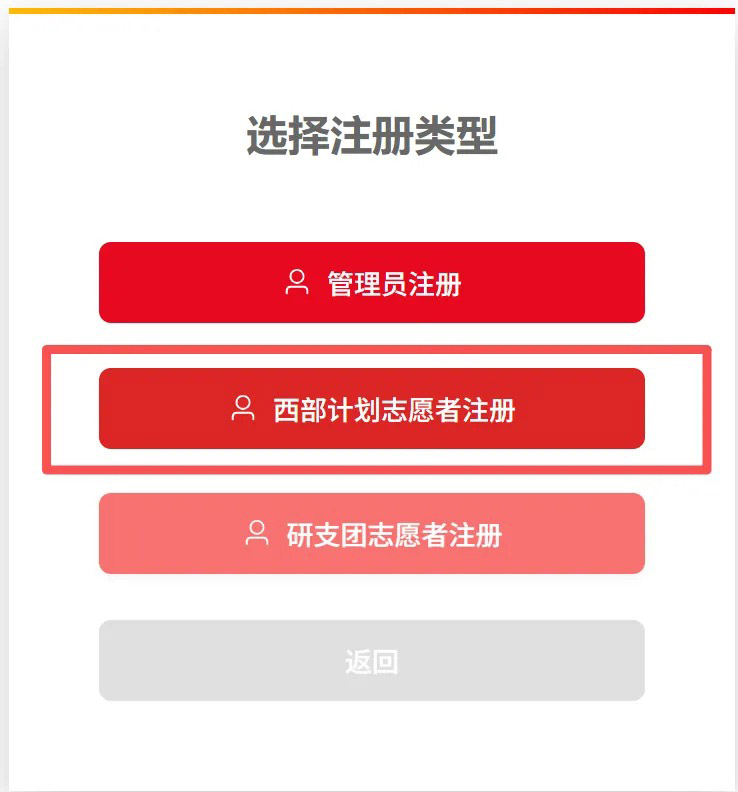 ◆ 选择“注册类型”:西部计划志愿者注册。