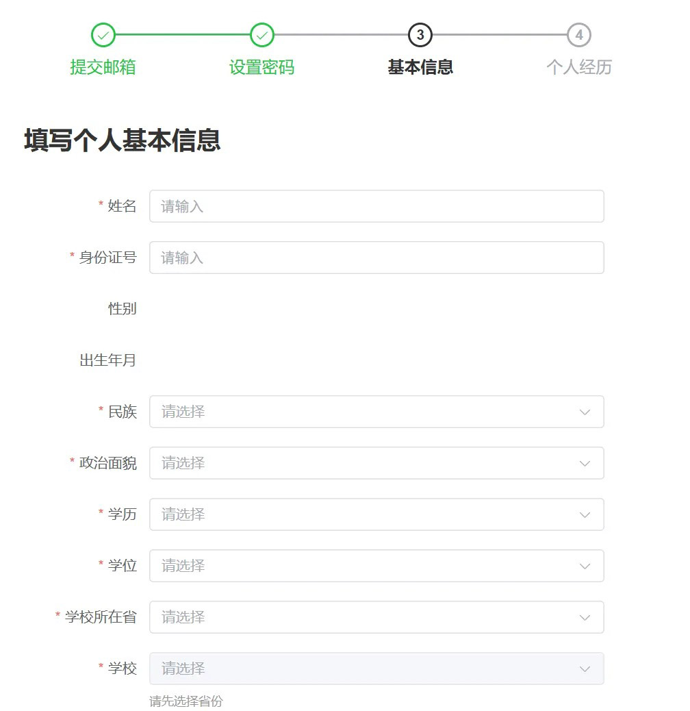 ◆ 认真填写个人基本信息、个人经历等,完成注册。