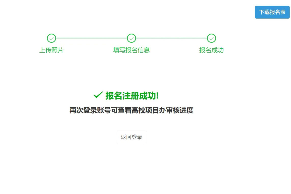 ◆ 显示“报名注册成功”后,点击右上角的“下载报名表”,进行下载并打印。