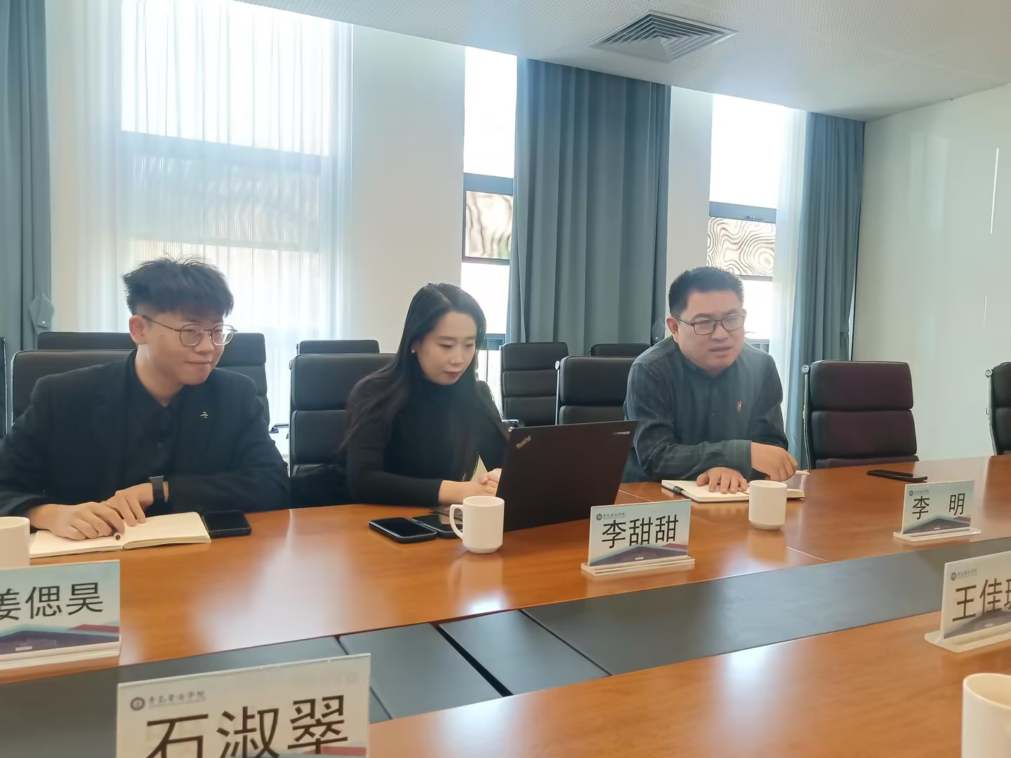 为深化产学研融合,搭建校企协同育人平台,2026年3月12日,青岛广电就业创业赋能基地负责人李明一行三人到访国际商学院,双方围绕人才培养、实习实训、就业创业等核心议题座谈。国际商学院院长助理王佳璇、数字商务系主任石淑翠及骨干教师石美、崔瑜参与交流。