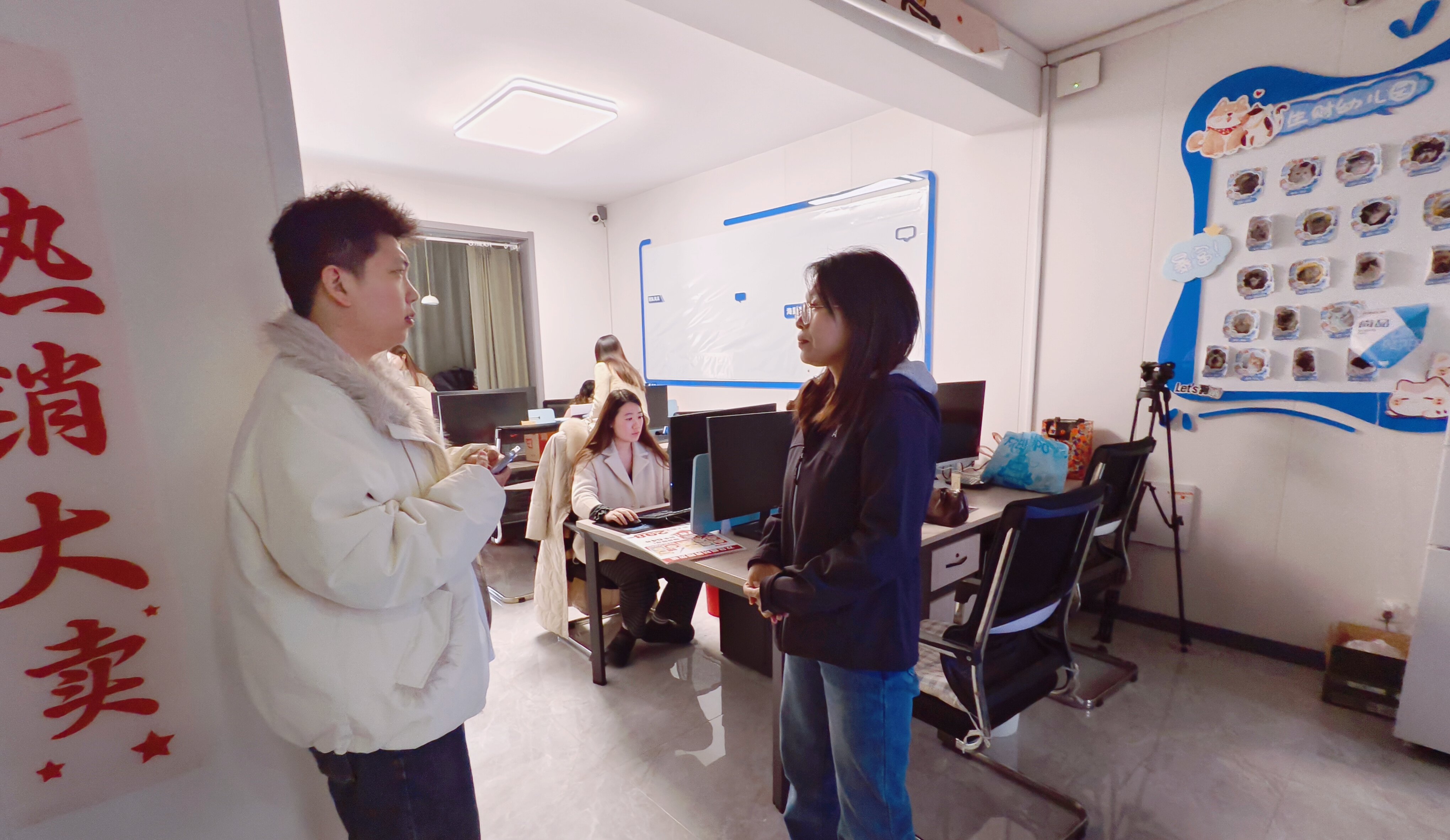 走访现场,鲸来直播电商公司负责人热情接待了我校教师一行,带领老师们实地参观了企业办公区、直播间、选品中心、短视频制作场地等核心区域,详细介绍了公司在直播带货、品牌代运营、短视频内容创作、达人孵化、新媒体矩阵营销、全域电商策划等领域的业务布局与发展优势,全面讲解了当前直播电商行业的发展趋势、人才缺口方向以及岗位能力要求。
