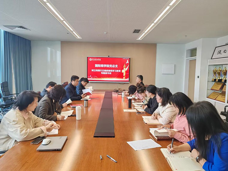 2026年3月24日,国际商学院党总支在知信楼406会议室举办树立和践行正确政绩观学习教育专题读书班。国际商学院全体中层干部,国际商学院党总支书记、委员,各党支部书记、委员参加读书班。