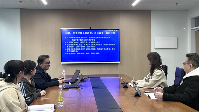 此外,马勇教授结合中心重点课题,为与会成员提供了科研选题与项目申报的具体建议。此次研讨会在梳理海洋教育政策演进逻辑的基础上,明确了研究重点与未来方向,为推动新时代海洋教育的高质量发展提供了有力的理论支撑与实践启示。