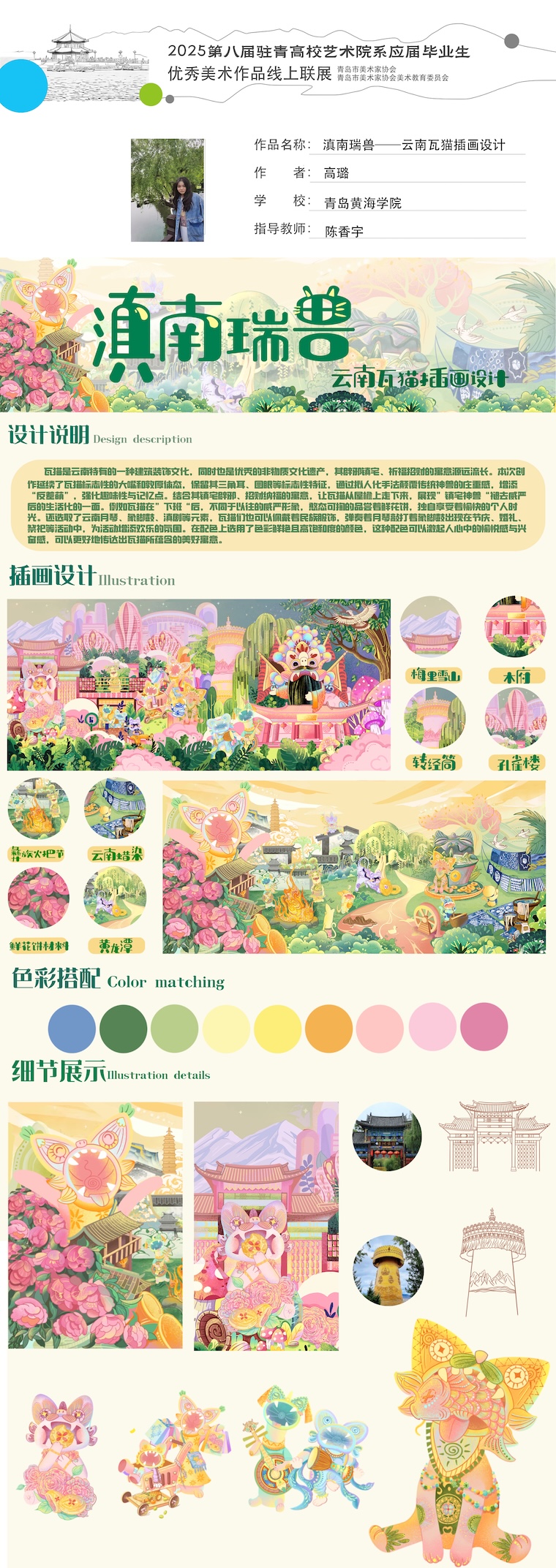 近日,“2025第八届驻青高校艺术院系应届毕业生优秀美术作品线上联展”入选及获奖名单正式公布,我校设计与美术学院学子凭借扎实的专业功底和出色的创意表现,在众多参赛作品中脱颖而出,斩获佳绩,充分展现了我校艺术教育的丰硕成果。