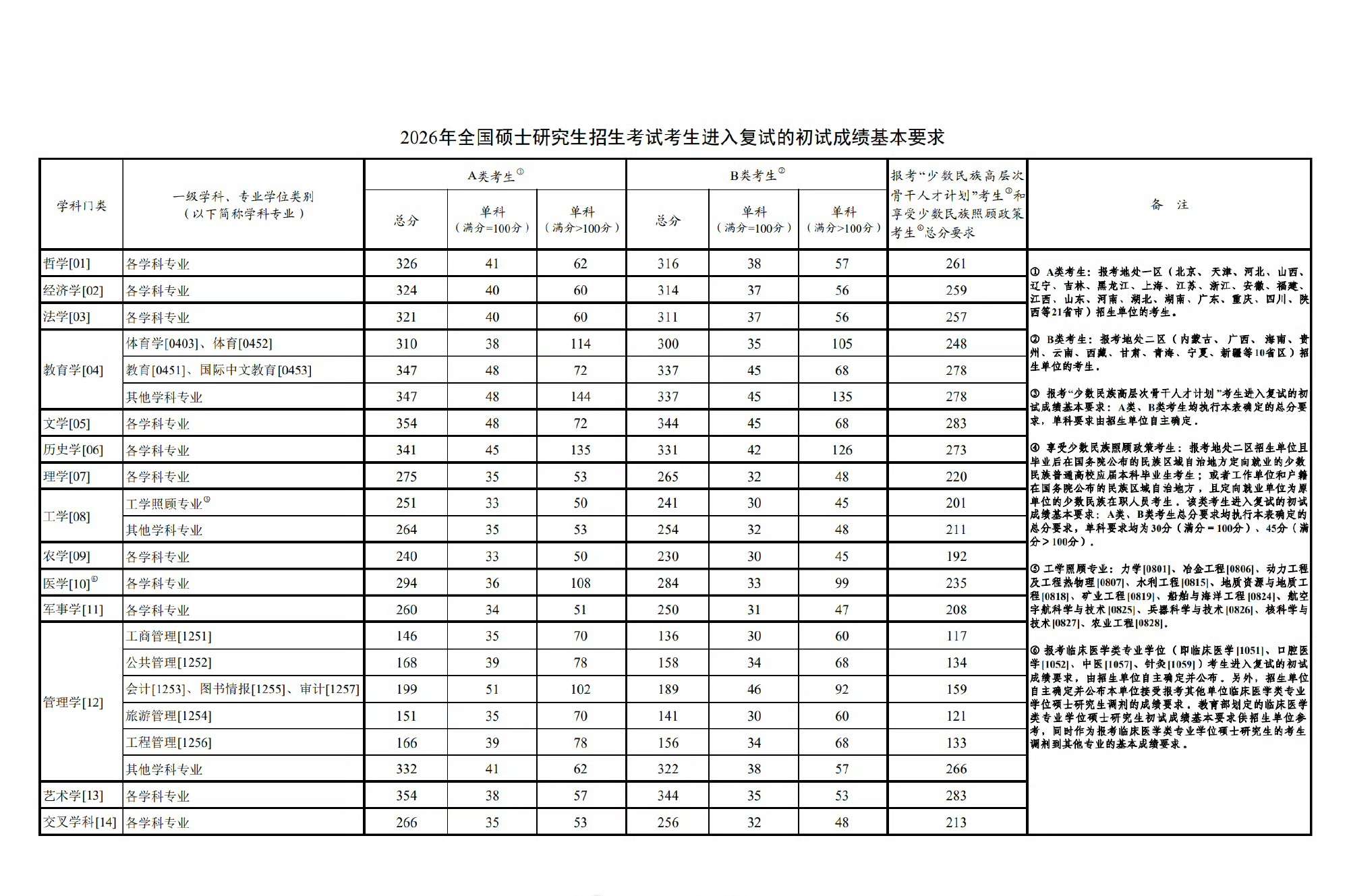 2月28日,教育部发布《2026年全国硕士研究生招生考试考生进入复试的初试成绩基本要求》(国家分数线)。各招生单位根据《2026年全国硕士研究生招生工作管理规定》,在国家分数线的基础上,自主确定并公布报考本单位的考生进入复试的初试成绩要求及其他学术要求。