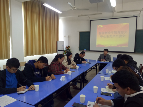 2019年4月11日下午4点,智能制造学院毕业生党员同志在知行楼517召开了学习交流会议,会议围绕毕业生党员的责任使命与发展为主题进行了充分的讨论和交流,孙丰鑫院长主持并作了相关动员讲话。