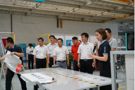 中共北京新能源汽车股份有限公司青岛分公司事业部党委书记、总经理王庆洲对我院一行表示热烈欢迎,寄希望于通过此次“党建共建实践基地”平台搭建,以党建为泉眼,辐射涵盖多领域多维度的校企互通,实现校企双方在深度和广度上合作互信,在合作中探索并践行产学研深度融合,达到培植企业核心技术骨干的目的。