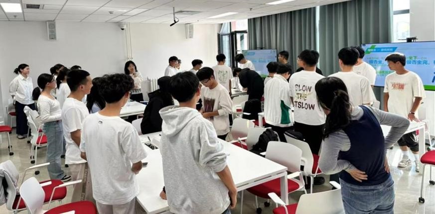 活动在“银杏坐,银杏坐,银杏坐完桂花坐!”的趣味接力游戏中欢乐开启,同学们通过举着植物闪卡接力互动的环节认识银杏、桂花等植物,这种方式让自然知识悄然浸润心田,在游戏中完成了一次生动的自然教育。