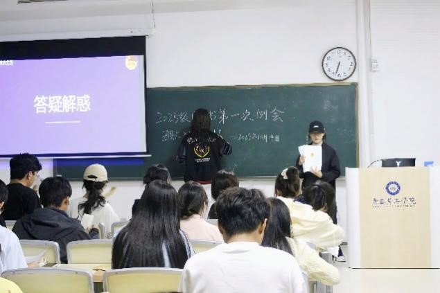 最后,青年志愿者协会会长丁铎对社会实践与志愿服务展开了深入讲解。他表示社会实践是引导大学生走出校门、接触社会、了解国情的重要活动,能够将所学理论知识应用于实际,服务人民群众,同时提升大学生的实践能力、社会适应能力和责任担当意识。