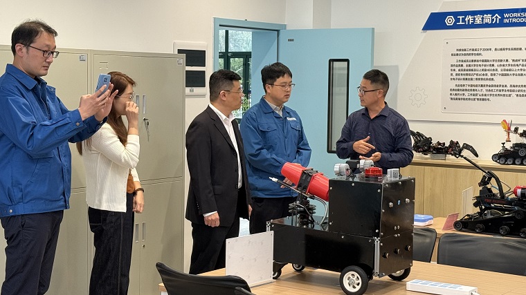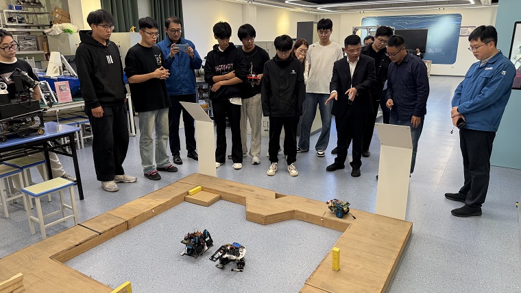 座谈会结束后,企业代表一行在王院长的陪同下,参观了位于一楼的机械与车辆工程实验室。从灵敏的智能小车避障系统,到高效的海上垃圾清理装置,学生们展示的创新成果赢得了青特集团代表的高度评价。企业代表对此给予高度评价,一致认为学生扎实的专业基础与出色的实践能力,是学院应用型人才培养成果的有力证明。与此同时,纪部长也结合企业当前需求,向工作室提出了关于“焊接视觉识别系统”的研发意向,希望工作室教师能带领学生共同开展相关设计与研究,最终形成可落地、能应用的实体装置,切实助力企业生产环节的智能化升级。