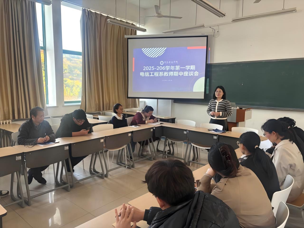 11月5日,教师座谈会电信工程系系主任刘娜主持,刘娜主任首先通报了近期通过听课、巡查及学生反馈等途径了解的课堂教学整体情况,重点围绕学生上课状态、知识掌握程度、作业提交与完成质量等具体学情,与与会教师进行交流。她结合学生前期提出的课程节奏、考研考公备考困惑、课后辅导等共性诉求,引导教师聚焦教学策略调整展开研讨。