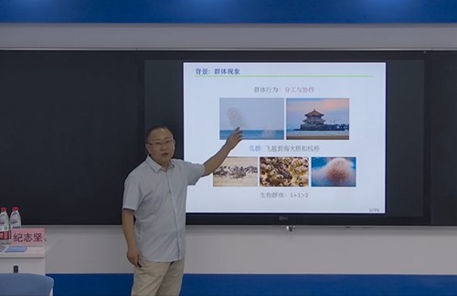 2025年7月4日下午,第三期名师讲堂在知行楼303智慧教室成功举办,本次讲堂邀请到了山东省泰山学者特聘专家纪志坚教授,以“群体智能协同原理的图理论视角”为题,为在场师生带来了一场精彩的学术分享。报告由智能制造产业学院机械设计制造及其自动化专业孙维丽主任主持,学院部分教师及学生代表参与讲座。